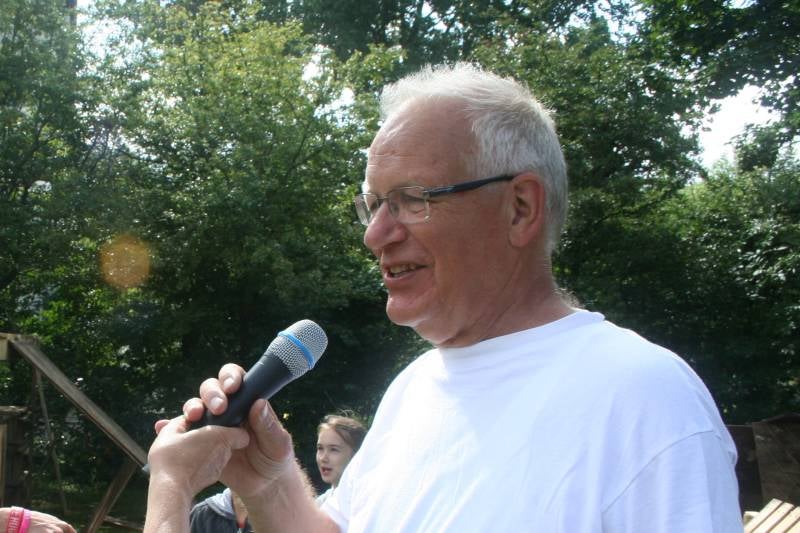 Sylvo. Vrijwilliger en tevens sponsor van water, geluidsapparatuur en stroom.